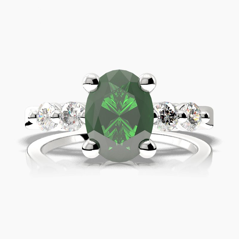 Categories: Emerald Engagement Rings, Emerald Oval-Cut Side Stones Engagement Rings