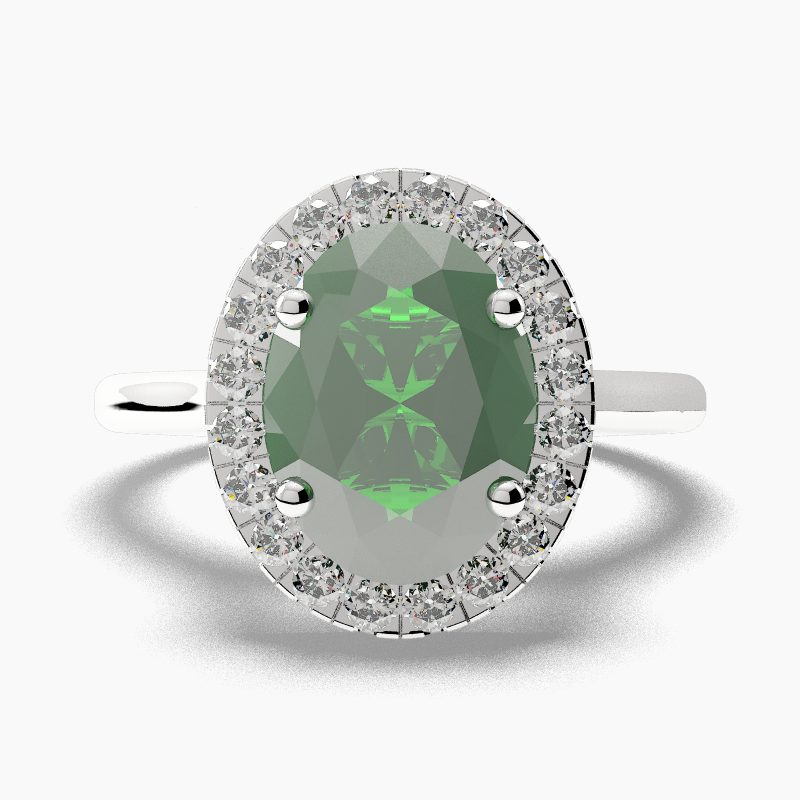 Categories: Emerald Engagement Rings, Halo Oval Cut Emerald Engagement Rings