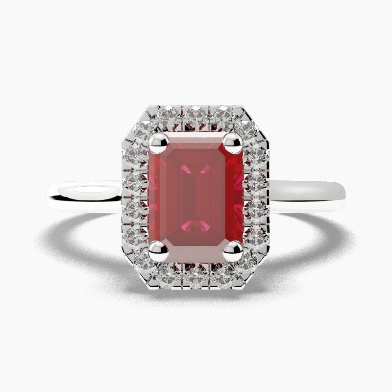Categories: Halo Emerald Cut Ruby Engagement Rings, Ruby Engagement Ring