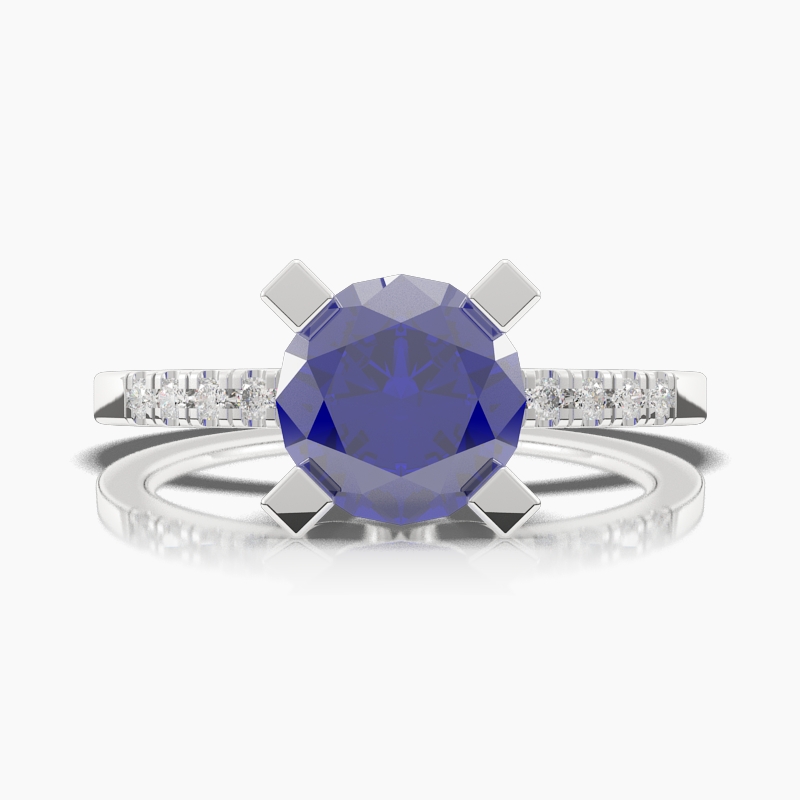 Round Blue Sapphire Engagement Ring TN68373