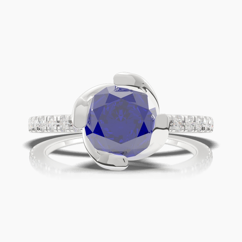 Round Blue Sapphire Engagement Ring TN68385
