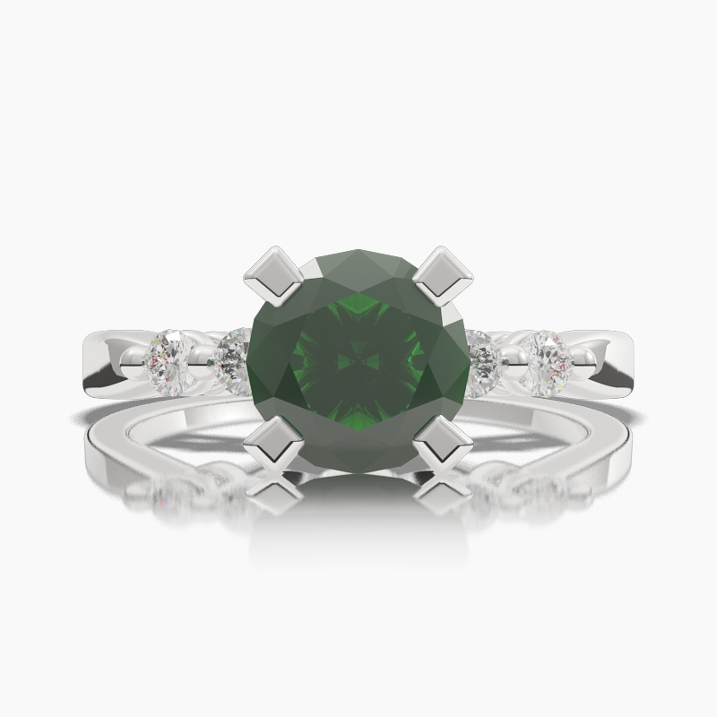 Categories: Emerald Brilliant Cut Side Stones Solitaire Engagement Rings, Emerald Engagement Rings