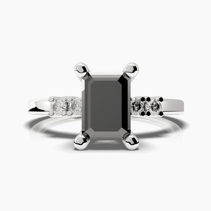 Categories: Black Diamond Engagement Ring, Emerald Cut Side Stones Black Diamond Engagement Ring