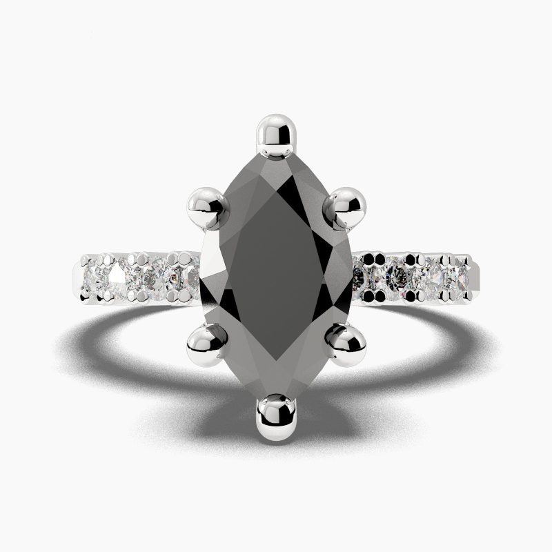 Categories: Black Diamond Engagement Ring, Marquise Cut Side Stones Black Diamond Engagement Ring