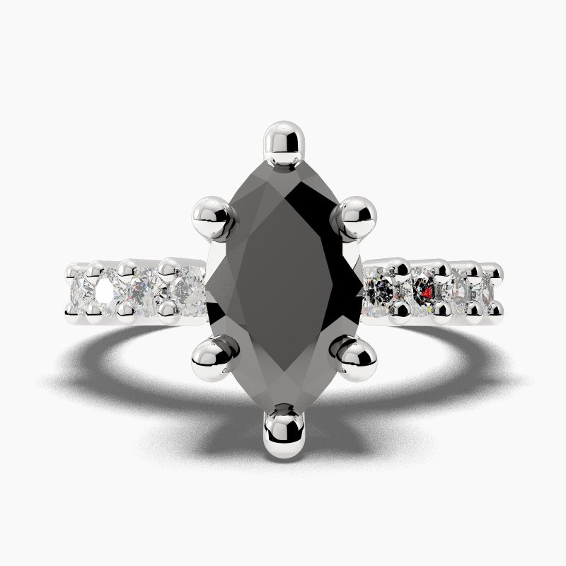 Categories: Black Diamond Engagement Ring, Marquise Cut Side Stones Black Diamond Engagement Ring