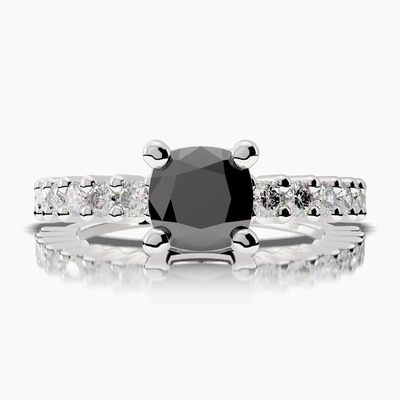 Categories: Black Diamond Engagement Ring, Cushion Cut Side Stones Black Diamond Engagement Ring